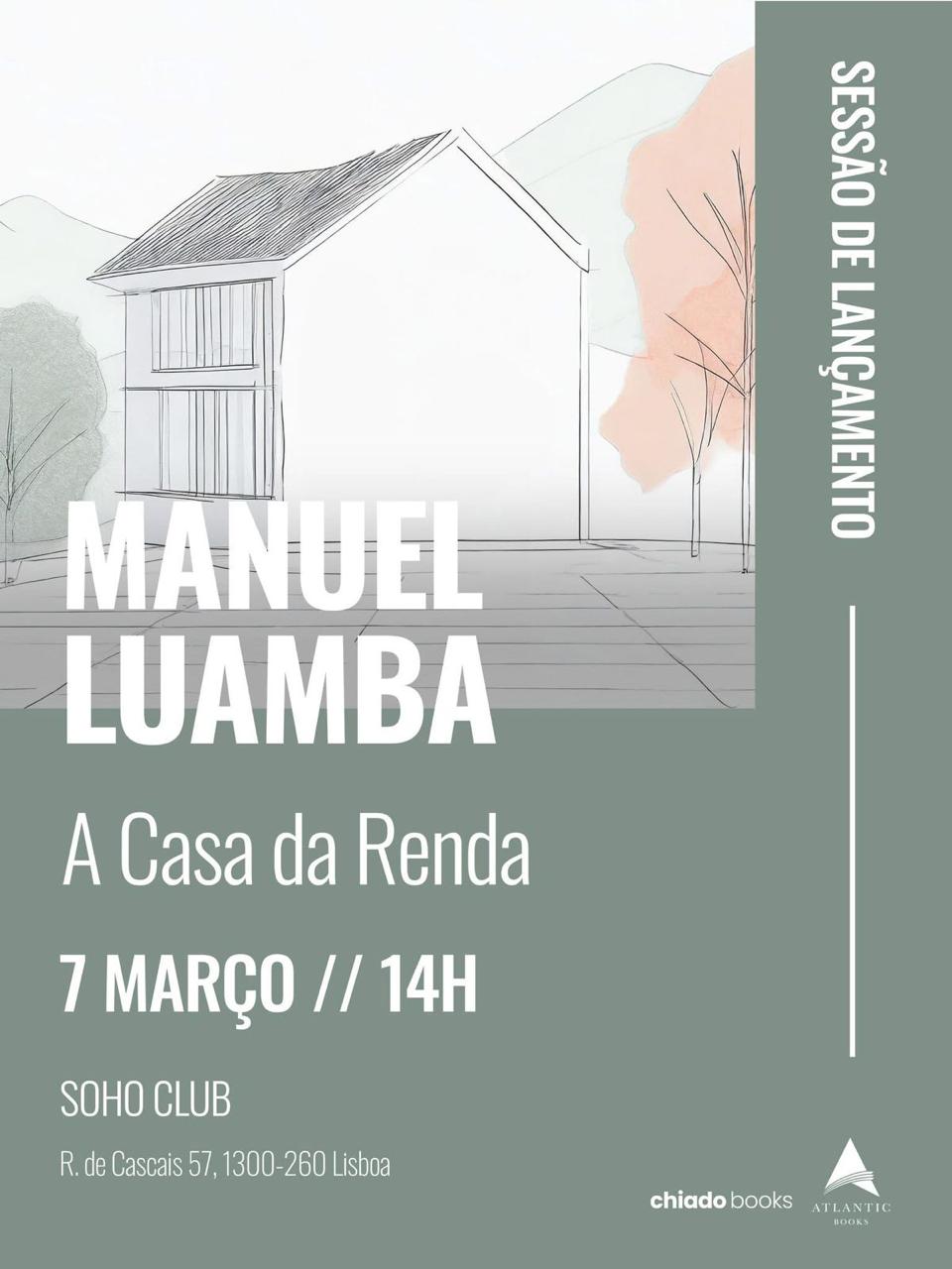 O romance “A Casa da Renda”, da autoria de Manuel Luamba, será lançado neste sábado, 07 de março, no Soho Club, em Lisboa.